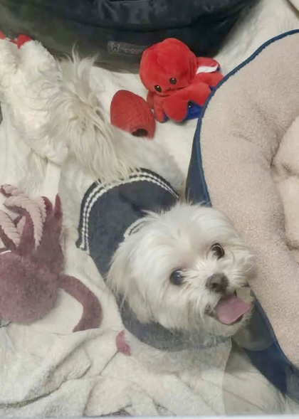 Say hello to Charley! He and Maisey are searching for a forever home together. He's reported to be quite the velcro-dog, always eager to snuggle up next to his person (and Maisey!) on the couch. They also shared that he LOVES to unwrap packages and presents. Of course the greatest gift of all will be to find a new home. Could you be the one to make his dream come true?
