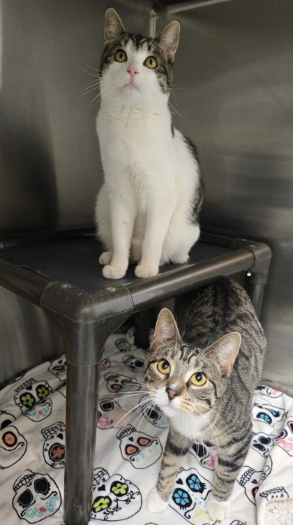 Shelly and Belly are the ultimate kitties! They are very outgoing going, playful, cuddly- literally everything you want in a cat! They love felines just as much as they love humans, so another cat in the home is a must for these girls!