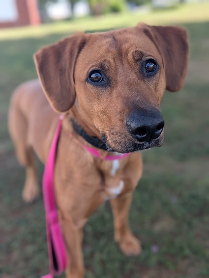 Meet Rosie! Rosie is a happy, friendly girl who can be high-energy at times. This pretty girl loves playing with stuffed animals and tennis balls but isn't the best at dropping it to play fetch just yet. Rosie cannot live with another dog due to wanting every toy and food item for herself and can be a bit too much but she can be with other dogs for possible play dates. She has not been a fan of female dogs here but has done well with male dogs with proper play intros. Due to Rosie wanting high value items for herself at times, she will have to be with teens and older. She could possibly live with an easy-going cat.