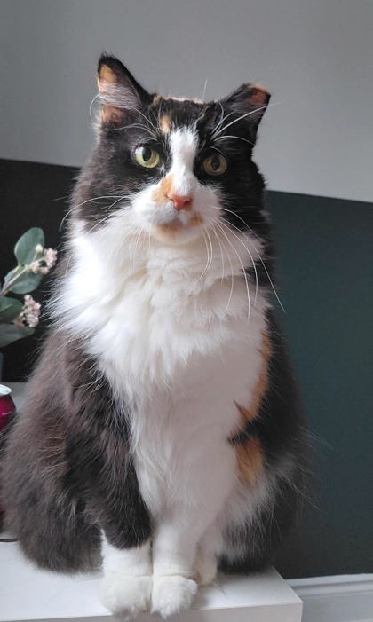 She love firm head pets but may never be a lap cat. When Boots decides she trusts you, she shows it in her own subtle ways. She appreciates a generous selection of toys - anything from balls to mice - and makes excellent use of all of them. A good scratch post is essential, and wet food is her clear preference. She has had a dental and is missing a few teeth, but her standards remain firmly intact.