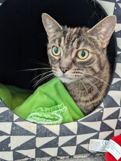 Meet Jade, a sweet and gentle girl who is looking for a calm, loving home where she can feel safe. She's a bit shy at first and likes to take her time warming up to new people and places, but once she's comfortable, Jade truly shines. She loves cuddles and enjoys being close to her people, though she can get a little nibbly when she's feeling especially excited-so gentle, respectful affection is best. With patience and kindness, Jade will reward you with soft purrs, cozy snuggles, and a loving presence that grows deeper every day.