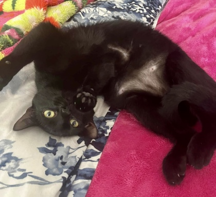 I'm a shy but oh-so-sweet girl with the softest black velvet fur and the prettiest eyes you've ever seen. It might take me a little time to come out of my shell, but once I do, you'll see just how loving and fun I can be.