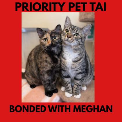 Hi! We are Meghan and Tai and we are a Priority Pets! We are a bonded pair, so we must be adopted together! Twice the fun, as we are best friends and love each other as much as we will love you!