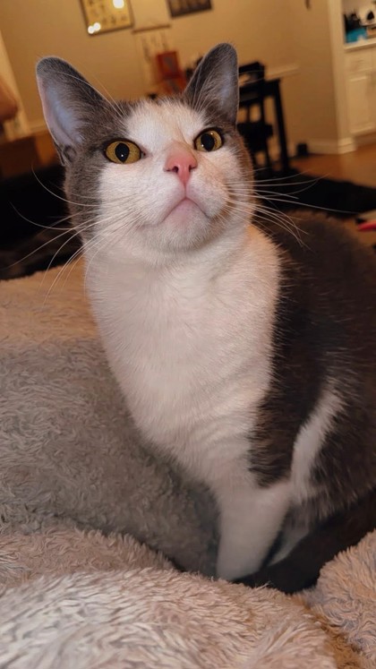 He's also incredibly smart and curious, complete with an adorable head tilt when he's trying to figure something out (especially when he spots his reflection - it's priceless!). Mikey does great with other cats, especially young, playful friends who can match his energy and enjoy interactive playtime.