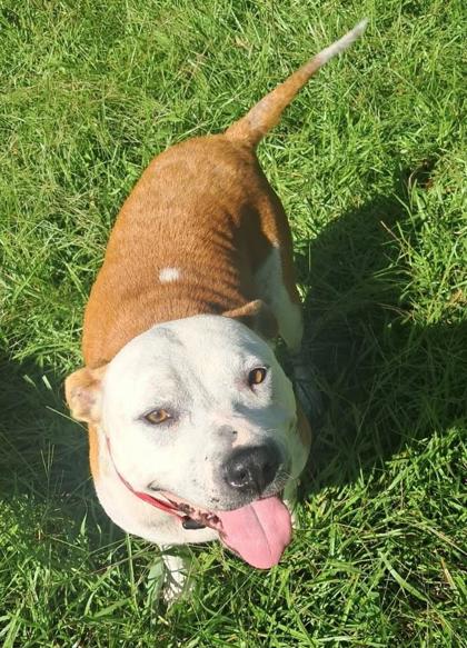 Some of my favorite things are chasing tennis balls, playing fetch, going for walks, and running around the yard with my dog friends. But my very favorite thing? Cuddling up close - I'll happily rest my head on your lap and beam up at you with my biggest smile.
