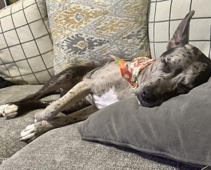 I have lots of energy and love to zoom around the yard a couple of times a day-it's my favorite way to get my wiggles out! After that, I'm all about relaxation and affection. I'd be happy as your one-and-only if I get plenty of love and attention, but I'd also do great with a doggy friend to play with.
