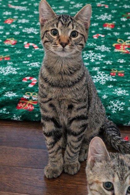 Hi there. I'm Squishy-the big cat around here, the cool cat, maybe even the leader of the pack. That might be because I've got big paws and I'm clearly growing into a very big kitty, both in size and in presence.