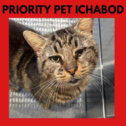 Hello, I'm Ichabod-a rather distinguished gentleman with excellent manners and a deep appreciation for life's simple comforts. I'm also a Priority Pet because I'm FIV-positive. That simply means I have Feline Immunodeficiency Virus (FIV), and it's very different from FeLV (Feline Leukemia Virus). Many FIV+ cats live long, happy, normal lives, and FIV is primarily spread through deep bite wounds-so it's not something that passes through casual cuddles, sharing bowls, or lounging together.