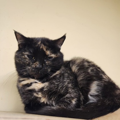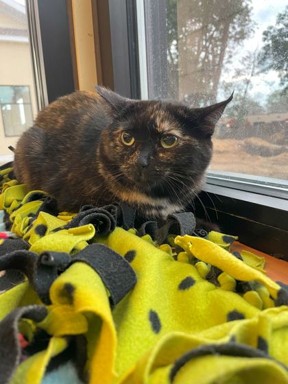 Mark your calendars. There's a Tortoiseshell Appreciation Day; it's April 17! But it should be every day! I'm Catherine, one of a large group of cats plus other animals who came to Paws and Claws from another rescue in early September. I had originally been found as a stray, and I live up to the tortoiseshell's reputation. I am a highly spirited girl, full of spunk and sparks. Do you remember the moral of the fable about the tortoise and the hare? Slow and steady wins the race. If you are to win me over, I will require patience and understanding. If you can purr-severe, I will sense your compassion. Love wins. When love wins. I win. I deserve love. We all do. Catherine.
