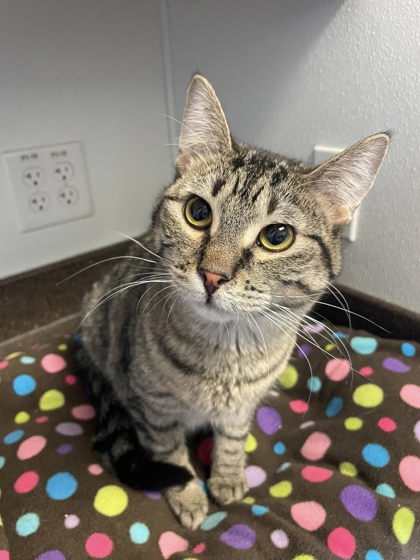 "Gear. Passion. Sports"? Who, me? Meh. I'm playful, but not overly action. But I-vant attention! I'm Ivan, a cute tabby boy who was found near Scheels. I was brought to the shelter in late August. I've made friends at PCHS with a kitty named Merlin, and we are a pair to go to our new home together. I do play a bit, but I really love attention! If sitting in laps and soaking up pets is a sport, I'm all in! And sorry, Scheels, there's no gear required! So, folks, save your money for kitty food and treats! And for my adoption fee! XO Ivan!