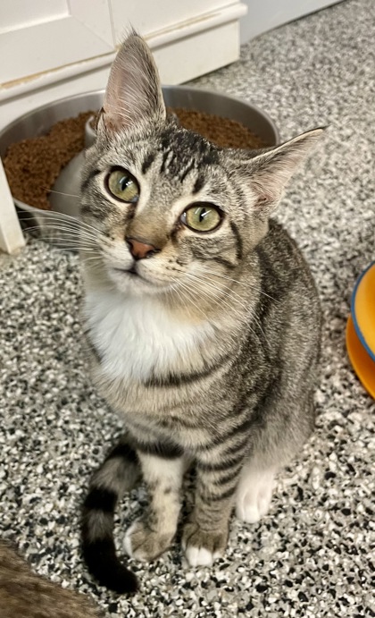 Her siblings are Onyx and Mika. All will be available soon in our foster-to-adopt program where we can allow small kittens to be fostered until they are old enough to be spayed/neutered, and then adopted out. Fosters must live close enough to bring them back for routine vaccines and for their final surgery.