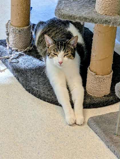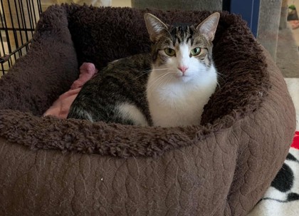 Meet Fidget, a kitten with a heart as big as his personality. His sweetness is as delightful as a summer's day, while his friendliness is as warm as a cozy fireplace. Fidget's gentle nature is a soothing balm, and his curiosity, a spark of joy. Yet, there's a hint of shyness in him, like a delicate flower waiting to bloom. His playful antics will surely make you smile, but what truly sets Fidget apart is his bond with Jewel. They're inseparable, two halves of a whole. Adopting Fidget isn't just about bringing a pet home, it's about welcoming a bundle of joy and love, it's about giving Fidget and Jewel a forever home. Because every pet deserves a loving family, and Fidget, with his sweet and playful nature, will make your family complete.