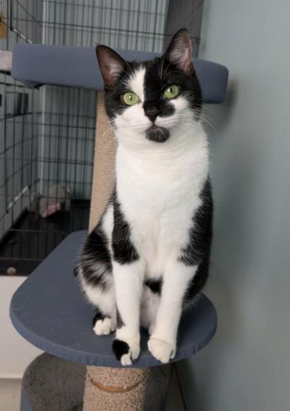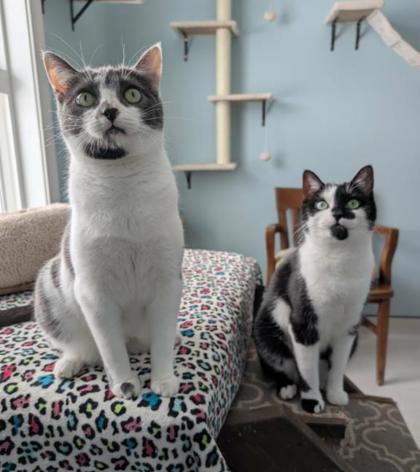 Bramble is a lively, adventurous boy with a big personality and striking eyes that are impossible to forget! He's playful and independent but shares a close bond with his sister Marigold - the two are rarely far apart. He loves human attention, too, and will often rub against you for pets and affection. Bramble's curious nature keeps him active and engaged. A home without other pets and with a cat climbing tree would be ideal for this spirited duo.
