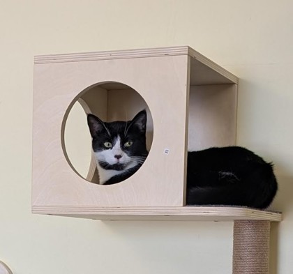 Puffin and his sibling, Pippin (now happily adopted), were brought into care thanks to compassionate people who had been feeding them while they survived on the streets. Thanks to that kindness, Puffin now has the chance to discover what a safe, loving home truly feels like. Puffin is a sweet kitten with a gentle nature. He can be a little shy and doesn't yet have a lot of confidence, but with patience and encouragement, his true personality will shine. He will need a calm, understanding adopter who can help him continue building trust at his own pace. Puffin enjoys interactive wand toys, chasing the laser light, and watching Cat TV. These playful moments help bring out his inner kitten and show just how much love he has to give. We truly believe Puffin will blossom into a wonderful, loving companion once he fully understands what it means to be loved. He just needs someone willing to guide him gently and show him that he's finally home.
