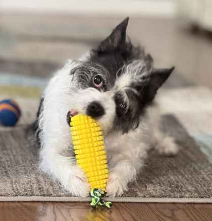 Her foster says, "Moxie loves everyone she meets. She is super smart, comes when called, holds eye contact when dinner is placed down and waits for ok before diving in. She is the most patient girl. Super smart Moxie will quickly learn whatever she is taught. She is the best companion, affectionate and funny. She'll follow you everywhere and will happily accept affection all day long!"
