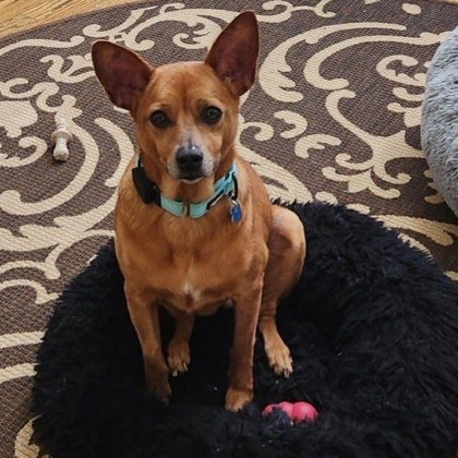 Her foster says, "Chica is a wonderful, sweet dog. She enjoys playing with her toys and with our dog who is similar in size and age to Chica, and has been great with our two senior dogs and with our cats. Chica was a bit shy with my husband at first but warms up quickly and is very loving with our family and has been friendly with people and dogs we've met.