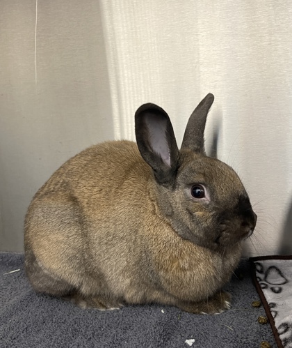 Hi there, they call me Cinnamon. I'm a quiet, curious 1 year old bunny who expresses my joy through little hops and cardboard art. I might start off shy, but if you have lettuce and a little patience for head scratches, we'll be best friends in no time!