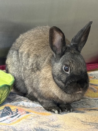 I'm a 1-year-old girl who's a little shy at first, but I promise there's a very sweet bunny underneath. New situations can make me nervous, so I like a bit of time to observe and feel safe before I fully relax. Treats help a lot-especially lettuce, parsley, and my personal favorite... shaved carrots (bribery works on me ??).