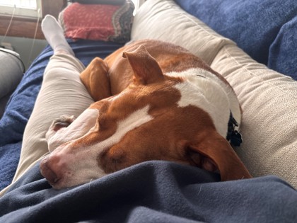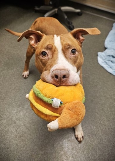 Totino has been lovingly described as a couch potato who acts like a cat. He is content to lay on your lap and cuddle all day. Totino loves receiving pets and affection. This fun guy loves to play with toys and always appreciates a good game of fetch. He may offer you his tennis ball or favorite squeaky toy and will put his paws in your lap ever so charmingly, gently taking a treat. Totino also does great in the car. This clever boy has been doing great with crate training and is housebroken.