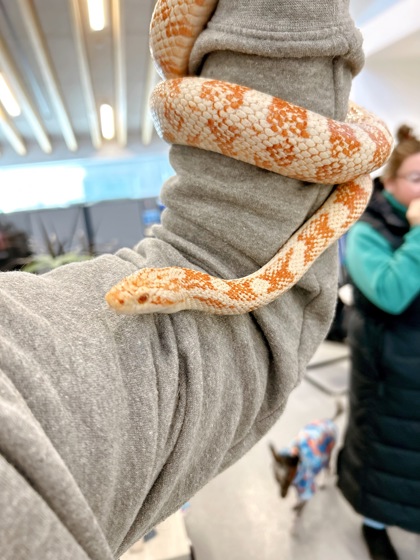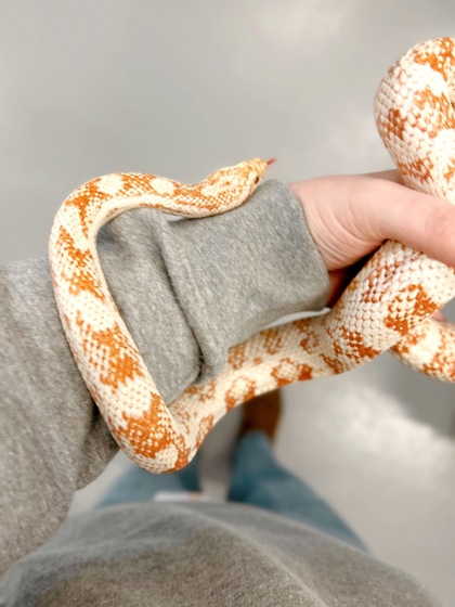 Citrine is a gentle and easygoing cornsnake who is ready to find a forever home of their own. Known for being very handleable, Citrine has been settling in well and enjoys calm, confident handling.