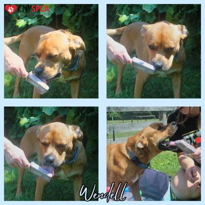 Wendell came in as a stray picked up in Baldwinsville and weighs about 45 pounds. So far we've learned that Wendell loves treats, although he's still mindful and gentle when taking them, and loves to play tug and hang out with people he's familiar with. He still needs a little work on manners but is coming around to be a very sweet and respectful boy.