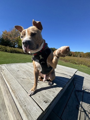 I'm a 4-year-old pit mix who came to the Erie Humane Society through the Cruelty Department, and now I'm ready to find a loving forever home! I'm a super sweet, laid-back boy who absolutely LOVES attention.