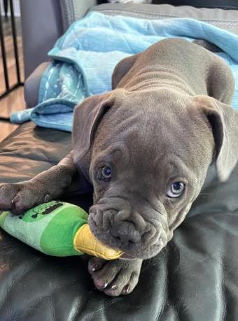 Likes: Loves toys and fetch, playing tug-o-war, snuggling, being held, sitting in laps, belly rubs when she is sleepy, men & women, squeaky and crinkle toys, ropes and Kongs, sleeping in your bed.