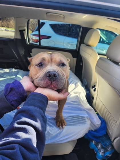 This 4-year-old "sausage potato boy" is the perfect mix of meathead and mushball. One look at that smile and you'll understand why everyone here is obsessed with him! Winston is incredibly affectionate - he'll lean his whole body into you for butt scratches! He loves attention, loves people, and is especially sweet with kids.