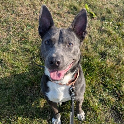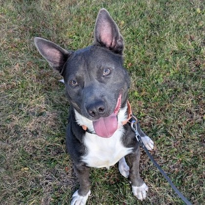 Batman was found as a stray in Liverpool and weighs about 50 pounds. Batman is an adorable, treat-motivated love bug who enjoys affection and gentle cuddles. He takes treats nicely and prefers them broken into smaller pieces, happily gobbling them up once they're bite-sized. He's easy to leash and can be a bit enthusiastic on walks at first, especially if he hasn't been out much, but he settles down nicely after some exercise. Batman knows the down command and is a good listener, especially with positive reinforcement.
