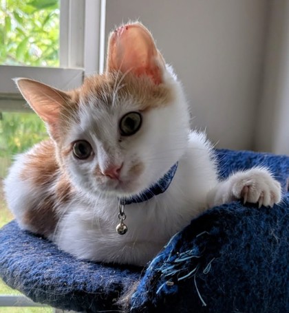 I love to play, wrestle, chase toys, and enjoy lickable treats. Petting and cuddles are my favorite, though I feel safest when my human is sitting down-or even better, napping! I'd love a home where I can keep learning that being loved is the best thing ever.