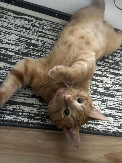 If you're doing dishes, folding laundry, or taking a nap, I'll be there-probably right at your feet or close by, just keeping you company. I'm an easygoing guy with a sweet, playful side. I love chasing pom-poms and batting at string, but I'm just as happy hanging out and enjoying your presence.
