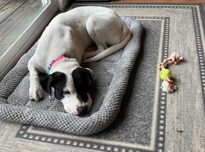 She especially enjoys slow paced walks where she can take in the sights and smells at your side. No rush, no hurry, just quality time and steady companionship. Whether she's walking alongside furry friends or making memories with her favorite humans, Pennie is always down to join in.